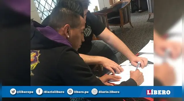 Esta tarde se filtró una foto en las redes sociales en la que se puede apreciar a Christian Cueva firmando su contrato profesional con el Santos, club con el que estará vinculado por los próximos cuatro años. El volante creativo quiere volver a su mejor nivel futbolístico para regresar a la selección peruana y jugar la Copa América que se va a desarrollar justamente en Brasil este año.
