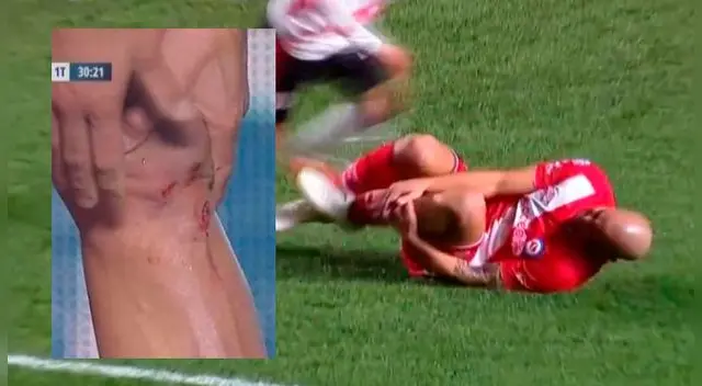 El volante de River estiró el pie en un intento por quedarse con el esférico, provocó la caída de su compatriota y aquello acabó con los toperoles de su chimpún derecho incrustado en la rodilla izquierda del delantero de Argentinos.