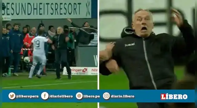 Ahora bien, la pelota salió en dirección a Christian Streich, DT del Friburgo, que obviamente no interrumpió su trayecto para quemar el tiempo de descuento. A David Abraham aquello lo exasperó al punto que dejar el hombro cuando iba a recoger el balón.