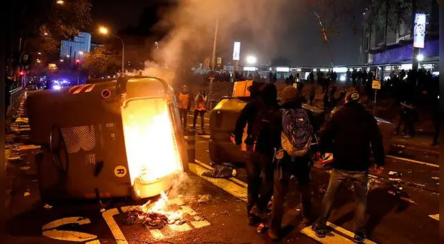 Se reportan incendios, balas y disturbios en las afueras del Camp Nou