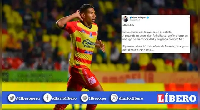 "Edison Flores con la cabeza en el bolsillo. A pesar de su buen nivel futbolístico, prefiere jugar en una liga de menor calidad y exigencia como la MLS. El peruano desechó toda oferta de Morelia, para ganar más dinero e irse a los EU", manifestó el comunicador a través de su cuenta de twitter.