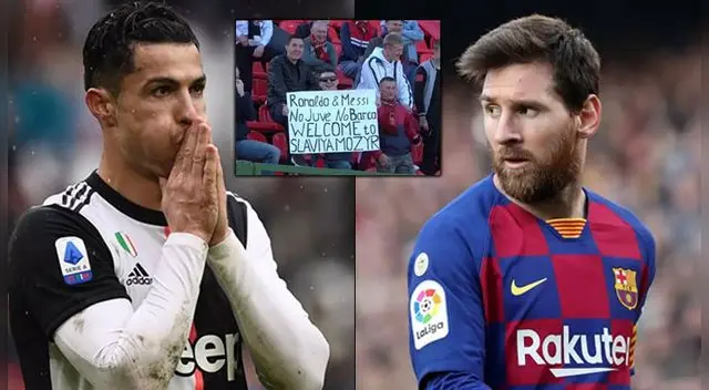 Lionel Messi y Cristiano Ronaldo no pueden jugar por la pandemia del COVID-19, pero desde Bielorrusia, los hinchas del Slavia Mozyr los invitaron con curioso cartel.
