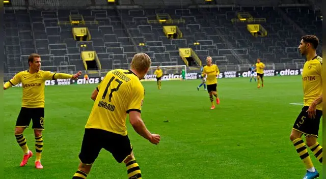 Borussia Dortmund se impuso este sábado por 4-0 en el regreso de la Bundesliga ante su tradicional rival, el Schalke 04, con un gol del noruego Erling Haaland, dos del portugués Raphael Guerreiro y uno del belga Thorgan Hazard.