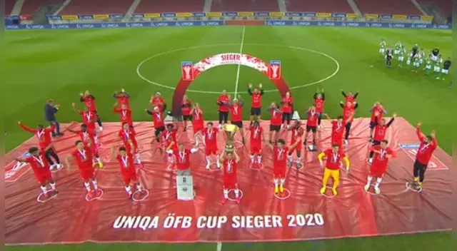 Los austriacos celebraron el título sin abrazos y guardando el correcto distanciamiento social incluso para alzar el trofeo como se aprecia en las imágenes de la transmisión local.