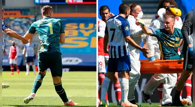 El portero del Arsenal tuvo que salir del campo de juego luego de sufrir un terrible golpe en el choque ante Brighton por la Premier League.