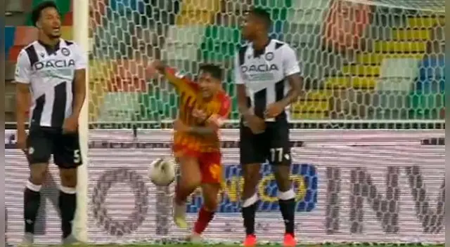 El "9" del Lecce recibió un centro desde la izquierda, habilitó a Barak, el checo avanzó hasta el área chica, amagó con el disparo, pero lo que hizo fue devolverle el balón al peruano para que convierta el 2-1.