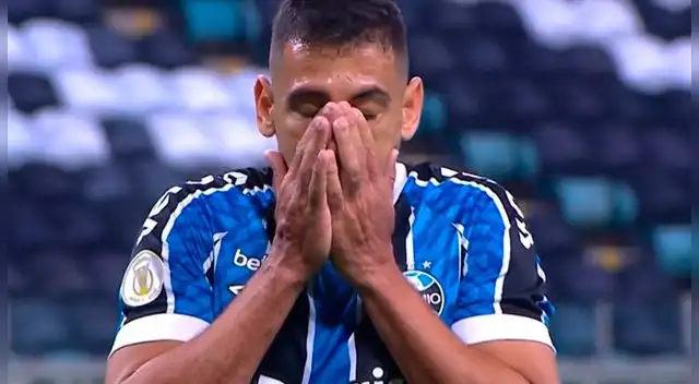 Diego Souza, el tantas veces héroe, se convirtió en villano en el Arena do Gremio al fallar un penal que el VAR le dio al 'Tricolor'. El "9" la quiso colocar cerca del palo izquierdo, pero se le fue el pie y perdió la mejor oportunidad posible de inflar las redes rivales.