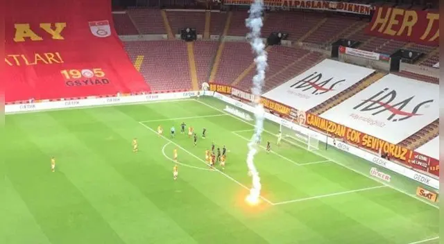 El clásico Galatasaray vs Fenerbahce en la Superliga de Turquía se vivió este domingo sin hinchas en el campo, pero eso no evitó que una bengala caiga en el césped.