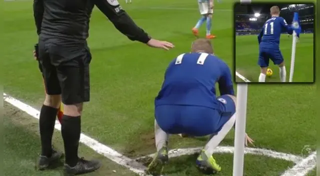 Timo Werner atraviesa por un mal momento en el Chelsea y las cosas no le salen bien, hasta para ejecutar un córner: pateó el banderín y quedó sentido.