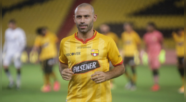 Javier Mascherano estuvo 60 minutos durante el empate de Barcelona SC con9 de Octubre, en lo que fue la presentación del equipo por laNoche Amarilla.