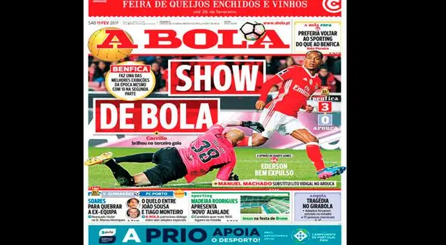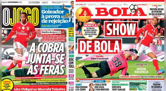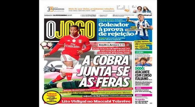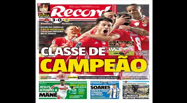 André Carrillo fue protagonista de todas las portadas por su golazo en victoria de Benfica | FOTOS /VIDEO
