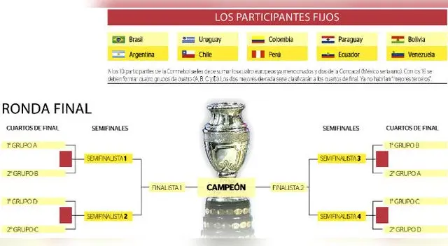 Asimismo, Brasil, Argentina, Uruguay y Chile (último bicampeón) serían los cabezas de serie en este novedoso sistema para el torneo de selecciones más antiguo del mundo.