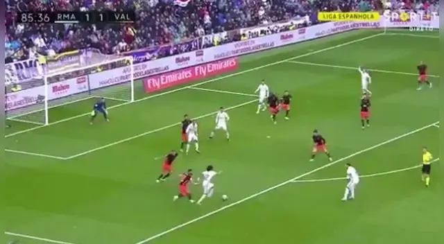 Cristiano Ronaldo adelantó de cabeza a los 27 minutos del primer tiempo. Sin embargo, en el segundo tiempo, un tiro libre de Dani Parejo puso el empate para el Valencia en el minuto 82. Toda la afición del Real Madrid temblaba por el gol visitante.