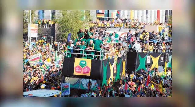 Una multitud enfervorizada, convertida en una inmensa marea amarilla, se entregó ayer a los jugadores de la selección de Sudáfrica tras pasear a bordo de un autobús descapotable por el popular barrio de Sandton en Johannesburgo.