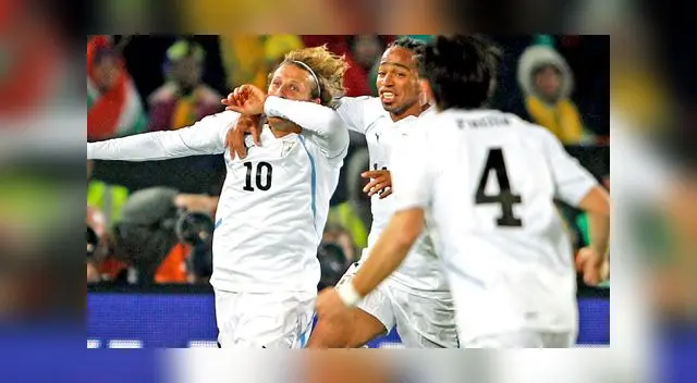 Con dos goles de Diego Forlán a los 24 minutos y a los 80' mediante la vía penal, y uno de Álvaro Pereira en la agonía del partido, los uruguayos derrotaron 3-0 a Sudáfrica por el Grupo A. El arquero de los africanos Khune se fue expulsado a los 79'.