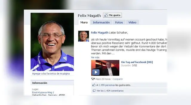 Tras un par de horas el mensaje generó más de mil mensajes, mientras que casi 2000 personas le dieron su apoyo al entrenador dándole un “me gusta” al video.Al respecto, el técnico de Jefferson Farfán le confesó al diario Kicker que “Estoy abrumado por el eco. Llegué aquí por las emociones, por los hinchas”.