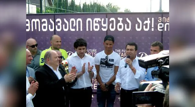 Cristiano estuvo acompañado por el georgiano Kaja Kaladze, quien militó durante nueve años en AC Milán y colgó recientemente las botas con un partido de despedida, y que ahora es viceprimer ministro y titular de la cartera de Energía del Gobierno local.