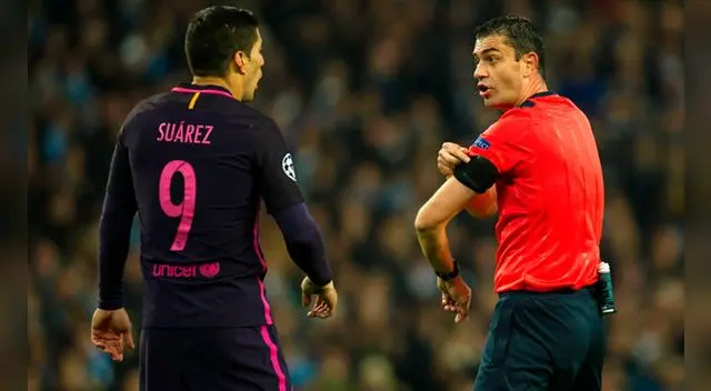 La primera discusión que tuvo Luis Suárez fue con el árbitro. El delantero del Barcelona no soportó un codazo del rival y persiguió por toda la cancha al juez del partido, pero este le dijo que si no es el capitán que no reclame.