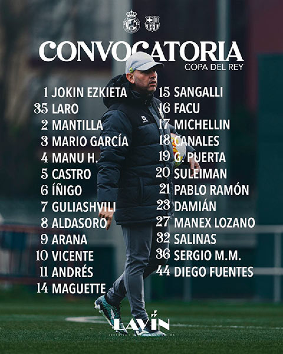 Esta es la convocatoria de Racing de Santader para dar el golpe ante Barcelona por Copa del Rey.
