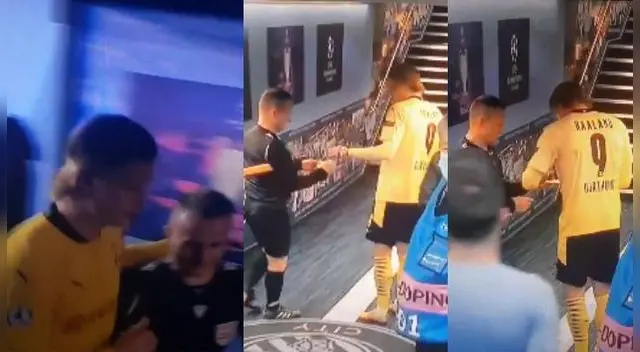 Octavian Sovre, juez de línea del encuentro entre Dortmund y Manchester City, le pidió autógrafo a Erling Haaland. El delantero aceptó el pedido del árbitro.