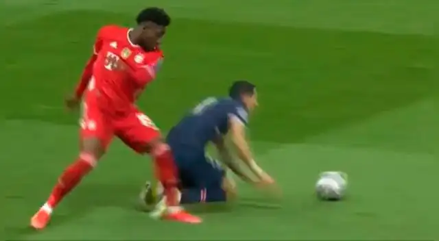 Alphonso Davies, lateral de Bayern Múnich, perdió una pelota en salida ante Di María y en el intento de querer arrebatarle el balón al zurdo acabó infraccionándolo.