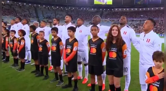 La algarabía se vivía en las tribunas del Estadio Maracaná desde momentos previos al inicio del partido y la fiesta llegó a su punto más alto en la ceremonia previa, con la entonación de los himnos nacionales. Como era de esperarse, el canto que identifica al Perú retumbó el recinto deportivo.