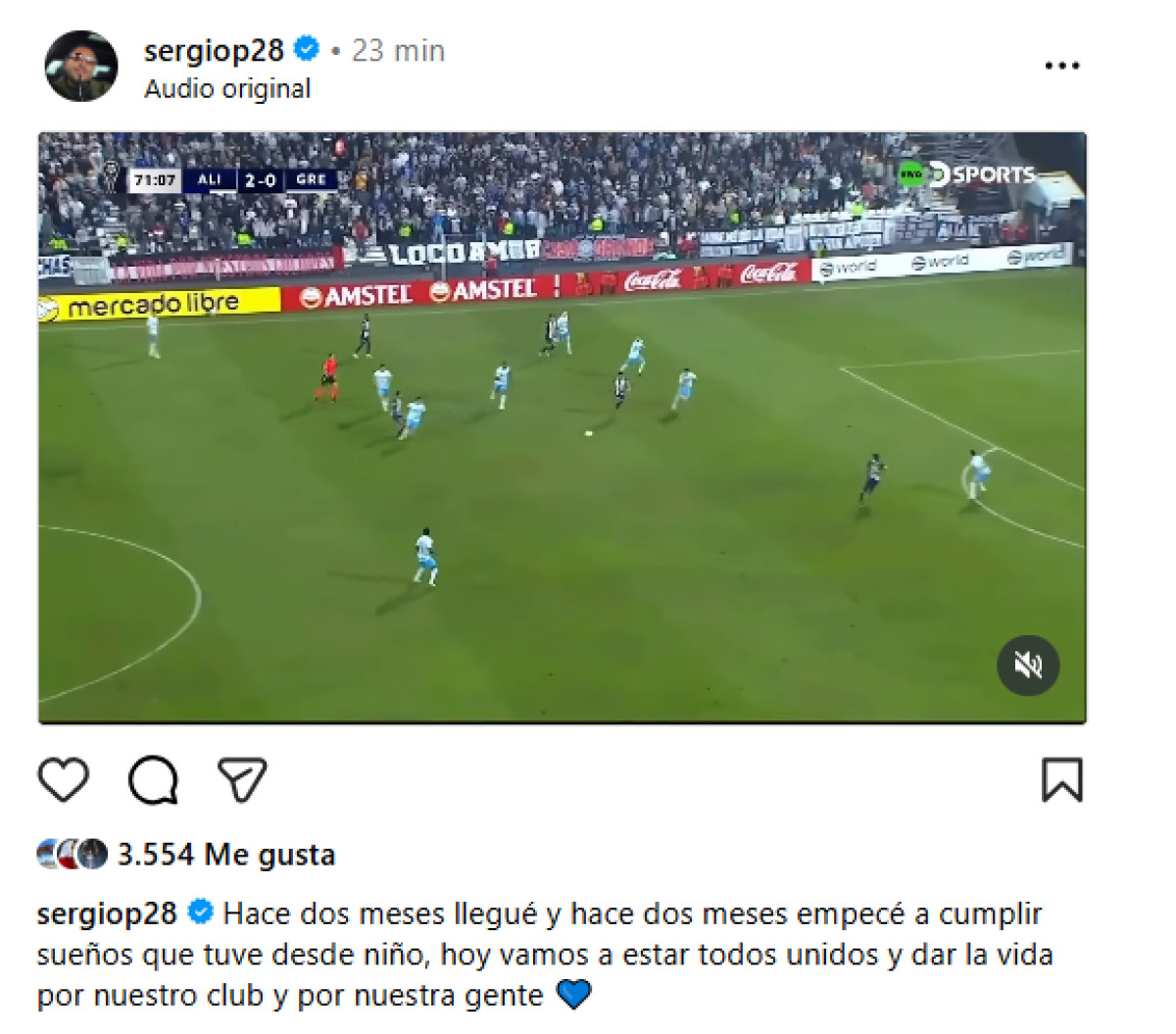 Sergio Peña y su emotivo mensaje