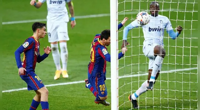 Pero a pesar de la gran atajada de Doménech, Jordi Alba encontró el claro y pudo ejecutar un importante centro para Messi, quien aprovechó la licencia de Mouctar Diakhaby para solo empujar el esférico. Se pedía una posición adelantada, no obstante, esto quedó desafectado luego de un rebote en un rival.