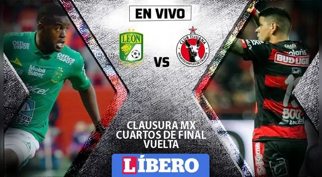 León vs Tjuana EN VIVO ONLINE EN DIRECTO | HOY se enfrentan en el estadio León desde las 09:06 p.m. (hora peruana) vía Fox Sports por la vuelta de los cuartos de final del Clausura de la Liga MX. Además, Libero.pe te traerá todas las incidencias de este encuentro que promete ser intenso de principio a fin.