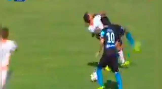 El ex Universitario de Deportes, al parecer no le gusto que le pise el balón, y le propinó una tremenda patada que tiró al jugador victoriano al suelo.