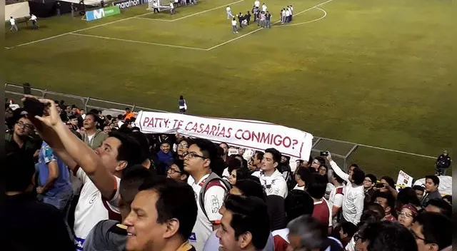 Para esta sorpresa hubo una gigantografía en la que se pudo leer: "¿Patty te casas conmigo?" y uno de los cómplices fue nada más y nada menos que 'Garrita', mascota de Universitario.