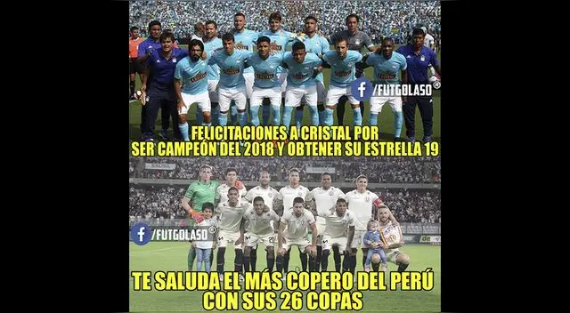 Los ya conocidos memes se hicieron virales en Facebook, algunas en celebración a la estrella N° 19 de los 'Rimenses', mientras que otras mofándose de la nueva derrota de Alianza Lima en la final. Acá te dejamos un compilado con las mejores imágenes.