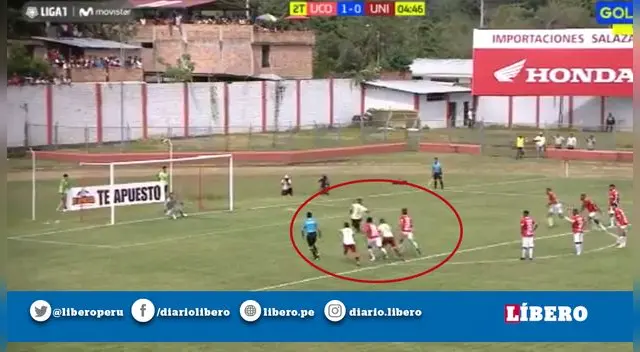 Cuando el cuadro dirigido por Nicolás Córdova trataba de llegar a la paridad, el árbitro del encuentro vio una infracción en el área chica de Unión Comercio por lo que Germán Denis se paró frente al balón para ejecutar el disparo en Universitario.