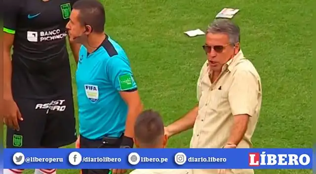 Si el DT de Alianza Lima ya estaba molesto, enfureció aún más y se metió por completo al gramado de juego del Monumental. Primero se acercó a sus dirigidos y luego fue a buscar al juez principal para terminar reclamándole a uno de los líneas.