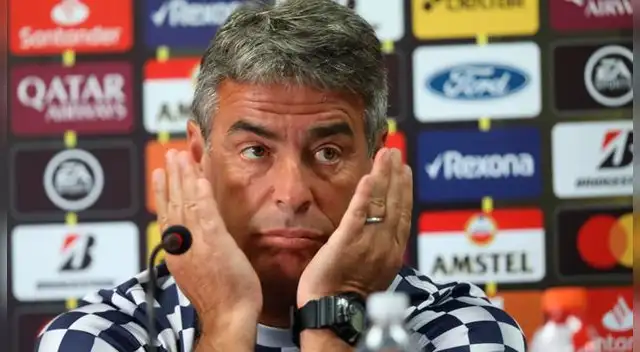 Pablo Bengoechea tuvo que dejar la banca de suplentes en el Universitario vs Alianza Lima al ver la roja que le mostró el árbitro Miguel Santiváñez, quien no aguantó los airados reclamos del DT uruguayo.