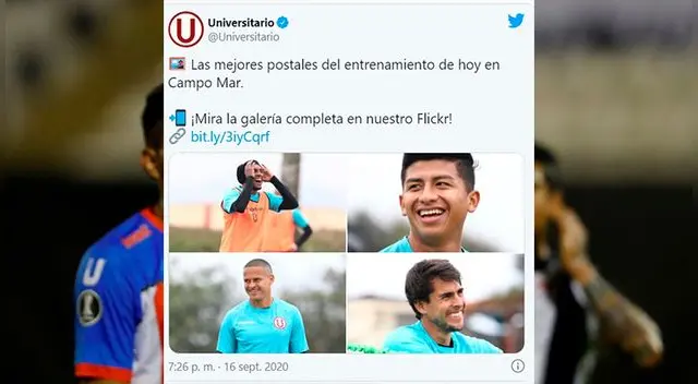 Aquella vez, en el Twitter de Universitario apareció una foto de varios jugadores riéndose. "Las mejores postales del entrenamiento de hoy en Campo Mar", escribieron con la imagen.