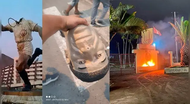 Universitario: vándalos decapitan estatua de Lolo Fernández e incendian Campomar - VIDEO