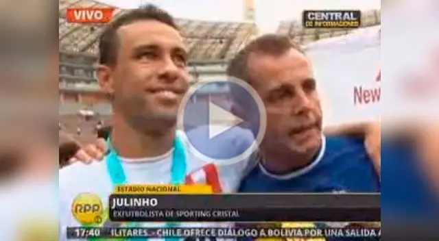 Julinho fue parte de las celebración de Sporting Cristal y de inmediato buscó a su compatriota Leandro Franco, con quien se mostró bastante amistoso."Julinho dejó la valla muy alta, pero yo ya salí campeón el primer año con Cristal y eso me da confianza", señaló Franco.A su turno, Julinho le replicó que él salió campeón con el cuadro celeste en su segundo año y que Leandro Franco tiene para mucho más."Yo salí campeón en el segundo año, Leandro lo hizo en el primero y tiene para mucho más. Puede conseguir el bi, el tri, el tetra", dijo el exfutbolista.Posteriormente ambos se dedicaron a bromear el uno al otro y Julinho hasta le bajó el pantalón al actual delantero celeste.