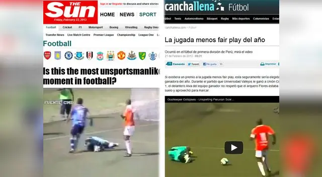 Piero Alva sigue siendo noticia en el mundo. No por sus buenas actuaciones, sino por marcar un gol sin respetar el fair play el último fin de semana ante Unión Comercio.Luego que su gol fuera criticado en España, esta vez las críticas volvieron a sonar en Inglaterra y el Reino Unido. Y es que el portal argentino Canchallena, del diario "La Nación", cataloga dicho tanto como "la jugada menos fair play del año"."Si existiera un premio a la jugada menos fair play, esta seguramente sería elegida como la ganadora del año", afirma el portal que acompaña dicha nota con el video del gol.En el Reino Unido, en tanto, el diario "The Sun" también critica la jugada, preguntando si dicho gol era el momento más antideportivo en el fútbol.