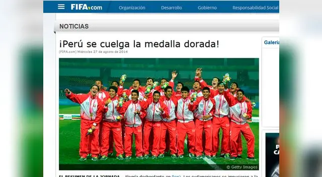 En su portal, el máximo ente que rige el fútbol puso como titular “¡Perú se cuelga la medalla dorada!” ante el primer logró FIFA que obtiene la selección peruana en toda su historia.