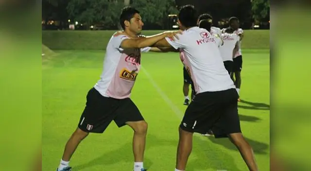 En el entrenamiento se vio a Paolo Guerrero y Carlos Zambrano muy animados. El 'Depredador' es le vió junto a Alexander Callens, haciendo los ejercicios antes de practicar con balón.