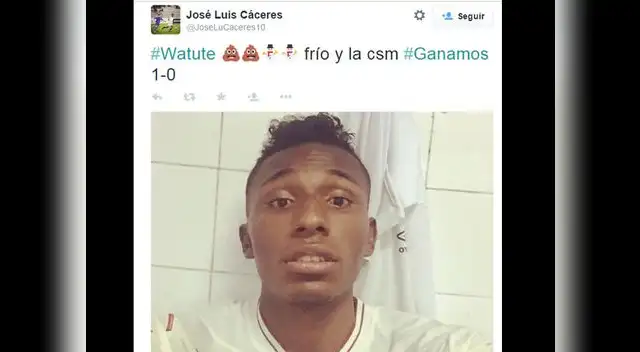 José Luis Cáceres, jugador de la reserva de la Universitario, "celebró" el triunfo "crema" sobre Alianza Lima con duras palabras. "watute ...frío y la csm # ganamos 1-0", puso en su red social que luego eliminó.