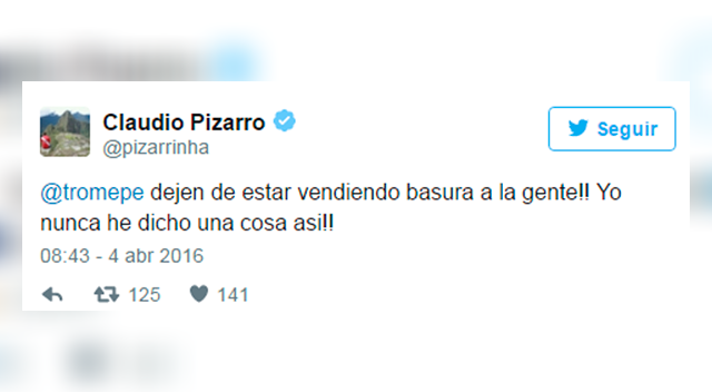 'PIZZA' AMARGATras esta información Claudio Pizarro no esperó mucho para responder, y mediante su Twitter fue contundente en su respuesta.
