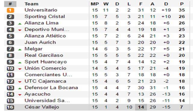 - Tabla Liga 1