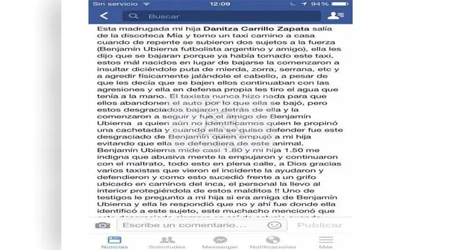La madre de Danitza Carrillo Zapata utilizó las redes sociales para hacer su denuncia en donde detalló que su hija se encontraba tomando un taxi a la salida de un lugar nocturno cuando el volante y un amigo la bajaron a la fuerza del vehículo insultandola con palabras obscenas.