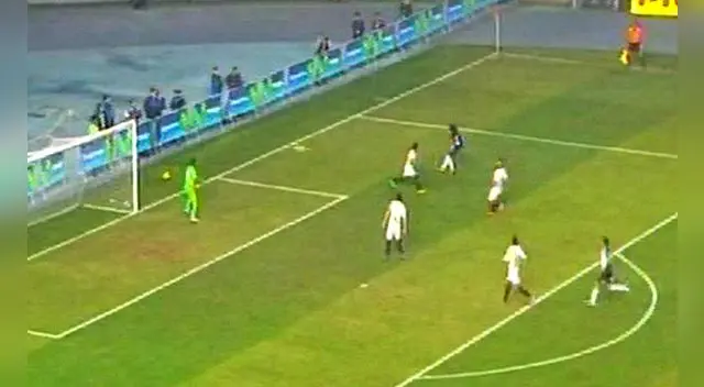 El potente disparo remeció el arco de Cáceda, quien nada tenía que hacer. Es el segundo palo en el partido. Minutos antes Guastavino había estrellado un tiro libre el parante del arco de George Forsyth.