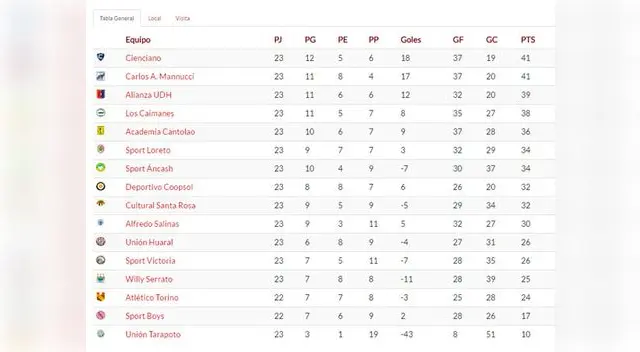 - Tabla Liga 1