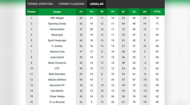 - Tabla Liga 1