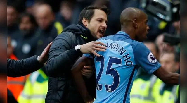 Acto seguido, jugadores del Chelsea se fueron a por el argentino para pedirle explicaciones, pero sus compañeros acudieron a defenderle. En esas, el brasileño Fernandinho la tomó con Cesc Fábregas, al que agarró del cuello de manera insistente hasta sacarlo del terreno de juego.