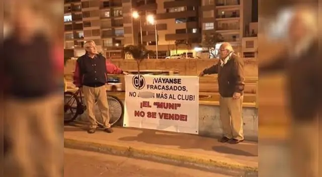 Y es que la emotiva foto muestra a dos verdaderos hinchas que sin importar la edad, la hora y el lugar, pidieron una pronta solución en favor del club que seguramente los vio crecer y regaló un sinfín de alegrías.